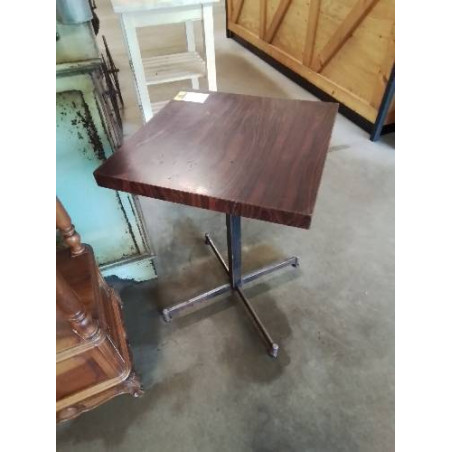 TABLE CARRÉ BISTROT PIÈTEMENT MÉTAL PLATEAU BOIS EN L\'ÉTAT