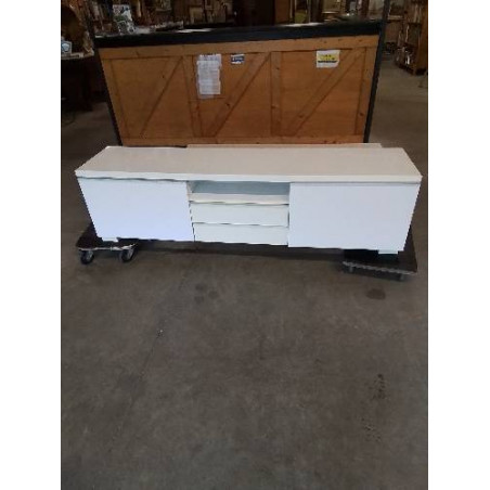 MEUBLE TV BAS BOIS BANC LAQUÉ 1 NICHE 4 TIROIRS