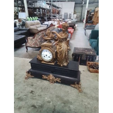 PENDULE DE CHEMINÉE MARBRE ET MÉTAL DORÉ A LA FEMME ET COLOMBE L\'ÉTAT (SONNERIE HS)