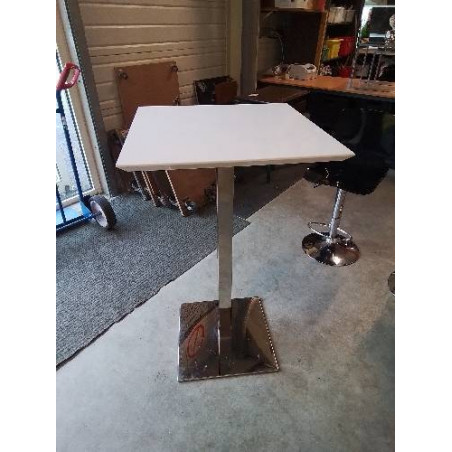 TABLE MANGE DEBOUT PIÈTEMENT MÉTAL CHROMÉ PLATEAU BOIS BLANC LAQUÉ