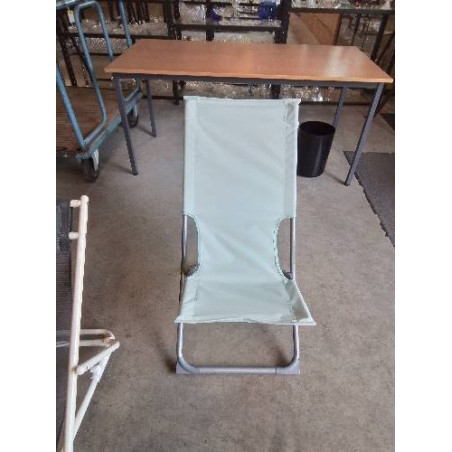 • CHAISE DE JARDIN PLIANTE MÉTAL GRIS TOILE VERTE