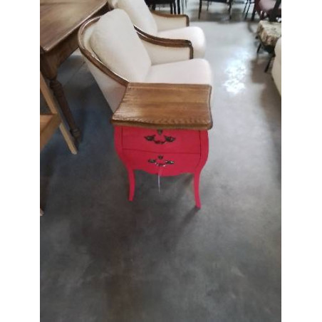 COMMODE BOIS FUSCHIA  2 TIROIRS STYLE LOUIS XV