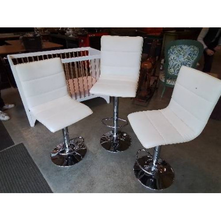 • TABOURET DE BAR PIVOTANT ET REGLABLE PU BLANC PIÈTEMENT MÉTAL CHROMÉ