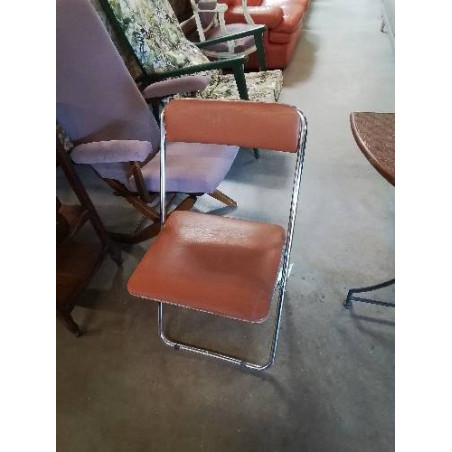• CHAISE PLIANTE PIÈTEMENT MÉTAL CHROMÉ ASSISE ET DOSSIER SKAÏ FAUVE ANNÉES 70