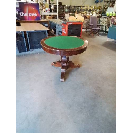 • TABLE A JEU RONDE ACAJOU 4 TIROIRS DEBUT XIXE