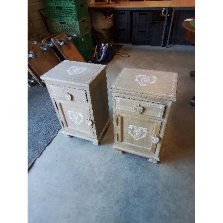 • CHEVET BOIS CERUSÉ  AUX COEURS 1 TIROIR 1 PORTE
