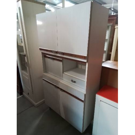 • MEUBLE DE CUISINE FORMICA ECRU ET MARRON 5 PORTES 1 TIROIR 1 NICHE ANNÉES 70