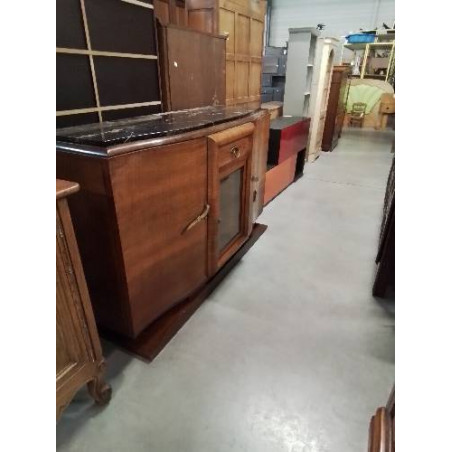 BUFFET ART DÉCO 2 PORTES 1 TIROIR 1 PORTE VITRÉE BOIS CLAIR DESSUS MARBRE NOIR EN L\'ÉTAT