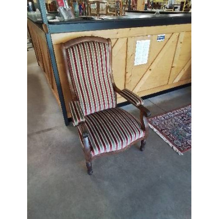 VOLTAIRE CAPITONNÉ TISSU GRIS ET GRENAT A RAYURES PIEDS PARAPLUIE LOUIS PHILIPPE