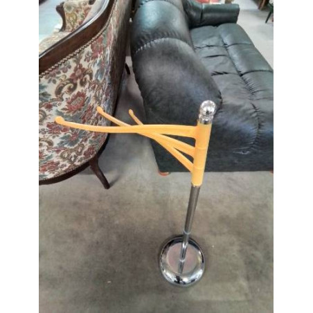 SÈCHE SERVIETTES PIÈTEMENT MÉTAL CHROMÉ 3 BRANCHES RÉSINE JAUNE