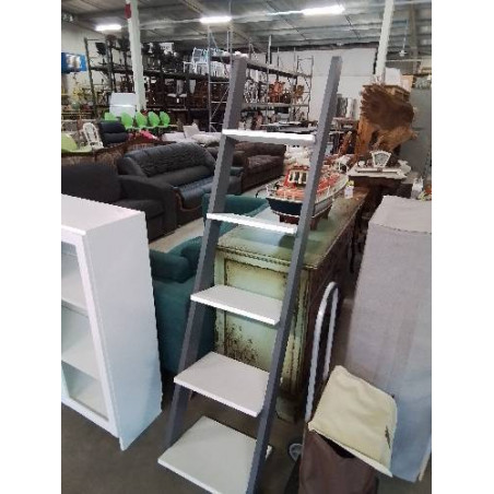 • BIBLIOTHÈQUE A POSER BOIS GRIS ET BLANC 5 TABLETTES