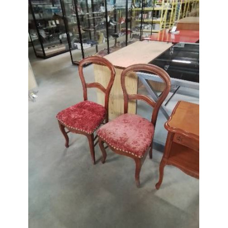 • PAIRE DE CHAISES NAPOLÉON III ACAJOU ASSISE  VELOURS ROUGE