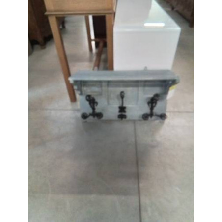 • VESTIAIRE MURAL BOIS PEINT GRIS PATÈRES FER FORGÉ NOIR