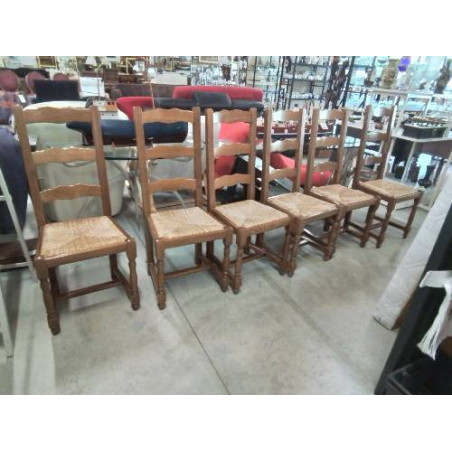 • 6 CHAISES BOIS PAILLÉ HAUT DOSSIER PIED BALUSTRE STYLE RÉGENCE