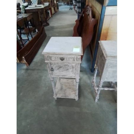 CHEVET BOIS CÉRUSE A COLONNES PLATEAU MARBRE PORTE 1 TIROIR FIN XIXE