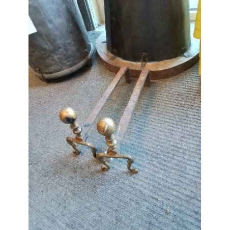 • PAIRE DE CHENETS FER FORGÉ BOULES LAITON