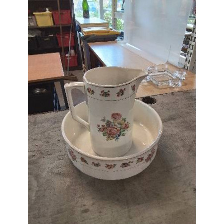 NÉCESSAIRE DE TOILETTE 2 PIÈCES CÉRAMIQUE BLANC AUX FLEURS MOULIN DES LOUPS ORCHIES