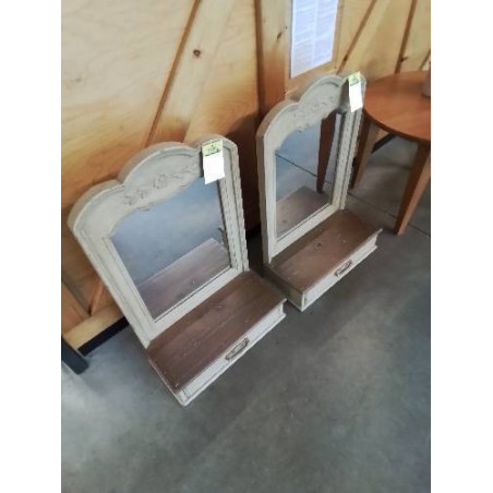 • MIROIR A POSER BOIS ECRU CINTRÉ ET SCULPTÉ 1 TIROIR COUNTRY CORNER