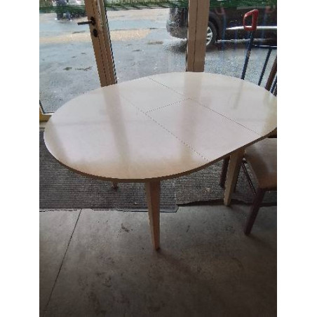 TABLE RONDE A RALLONGES PAPILLON BOIS ECRU 100X75CM