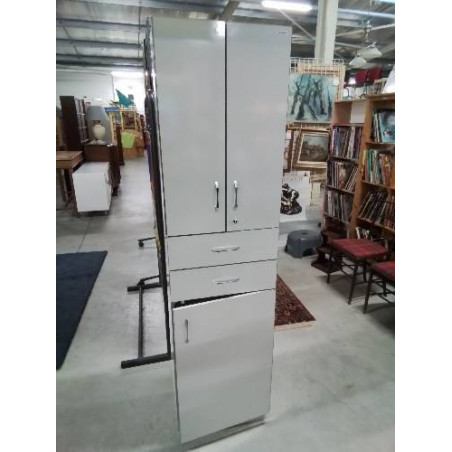 • COLONNE DE SALLE DE BAIN BOIS BLANC 3 PORTES 2 TIROIRS JANIJURA