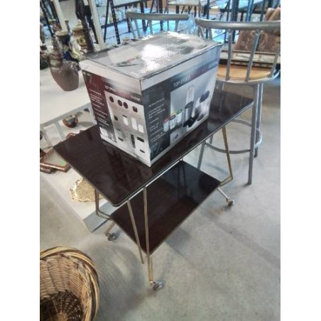 DESSERTE A ROULETTES MÉTAL DORÉ 2 NIVEAUX PLATEAU FORMICA MARRON ANNÉES 60