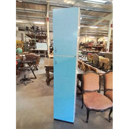 • COLONNE BOIS BLANC 2 PORTES FORMICA BLEU ANNÉES 60