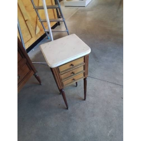 CHEVET 3 TIROIRS DESSUS MARBRE BLANC STYLE LOUIS XVI