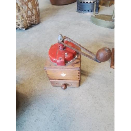• MOULIN A CAFÉ BOIS ET TOLE ÉMAILLÉE ROUGE