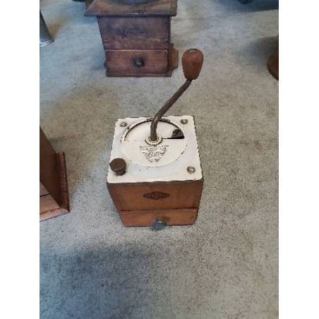 • MOULIN A CAFE BOIS CLAIR ET TOLE ÉMAILLÉE BLANC SANPEUR