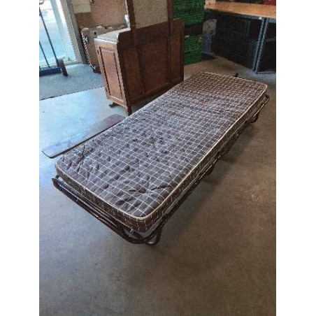 LIT D’APPOINT MÉTAL MARRON MATELAS TISSU MARRON
