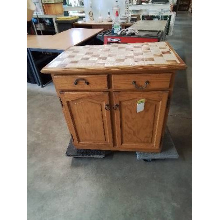 BUFFET DE CUISINE PIN DESSUS CARRELÉ 2 PORTES 2 TIROIRS