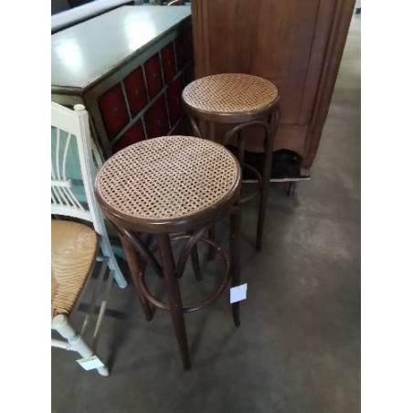 • PAIRE DE TABOURETS DE BAR BOIS COURBÉ ASSISE CANNÉE