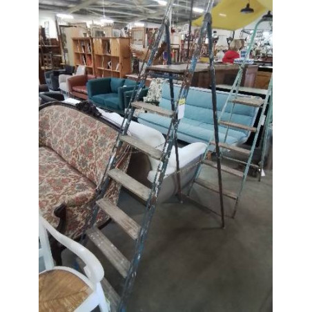 ESCABEAU MÉTAL BLEU A TABLETTE 7 MARCHES BOIS