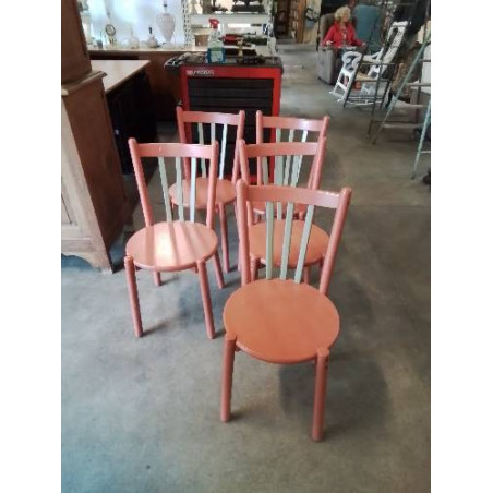 5 CHAISES BOIS PEINT ROSE ET BARREAUX VERT ANNÉES 50