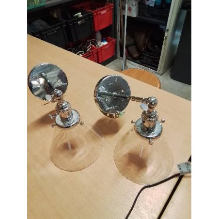PAIRE D’APPLIQUES MÉTAL CHROMÉ ET VERRE