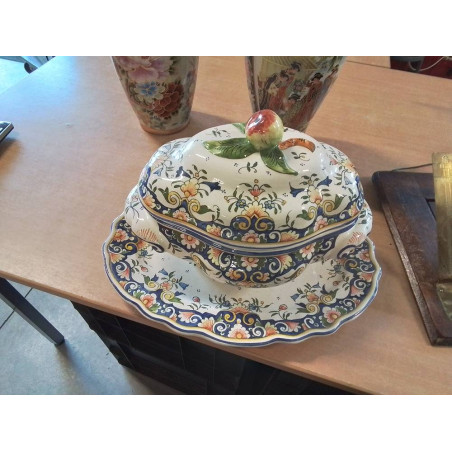 SOUPIÈRE ET SON DORMANT CÉRAMIQUE DÉCOR AUX LAMBREQUINS