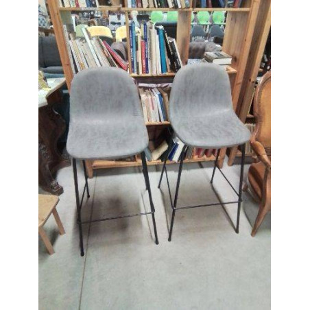 PAIRE DE TABOURETS DE BAR PIÈTEMENT MÉTAL NOIR ASSISE TISSU TAUPE