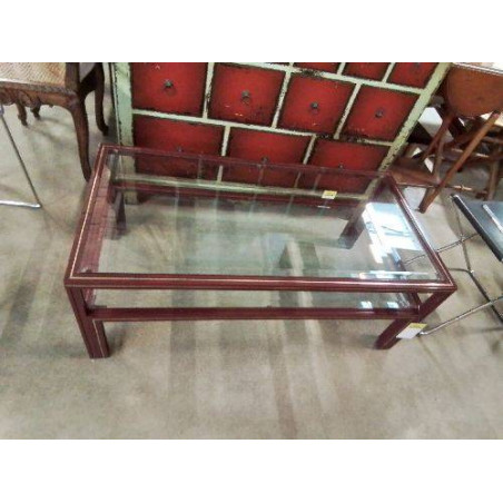 • TABLE BASSE RECTANGULAIRE PIERRE VANDEL MÉTAL GRENAT PLATEAUX VERRE