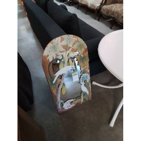 • MIROIR CINTRÉ BOIS COLORÉ DÉCOR AUX PERROQUETS