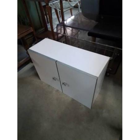 ARMOIRE MURAL 2 PORTES BOIS BLANC POIGNÉES MÉTAL CHROMÉ
