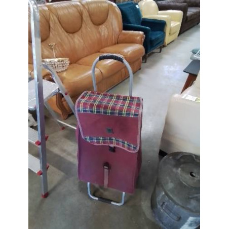 • CHARIOT DE COURSES A ROULETTES METAL GRIS ET TISSU MAUVE GIMI