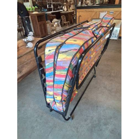 LIT D’APPOINT A ROULETTES PLIANT METAL NOIR MATELAS TISSU COLORÉ