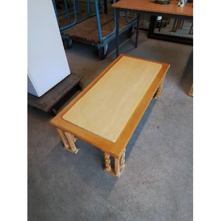 • TABLE BASSE RECTANGULAIRE A COLONNES BOIS CLAIR DESSUS MARBRE ECRU