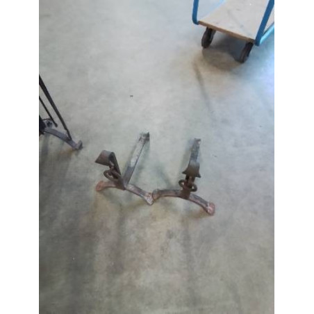 • PAIRE DE CHENETS A ANNEAUX FER FORGÉ