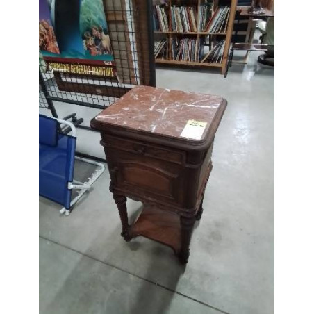 CHEVET ACAJOU A COLONNES 1 TIROIR 1 PORTE DESSUS MARBRE ROUGE VEINÉ NAPOLÉON III