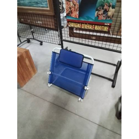 • DOSSIER DE PLAGE PLIANT RÉGLABLE PIÈTEMENT MÉTAL BLANC TOILE BLEU