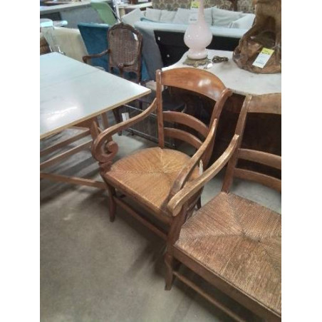 • FAUTEUIL DE CHEMINÉE A CROSSES BOIS PAILLÉ XIXE