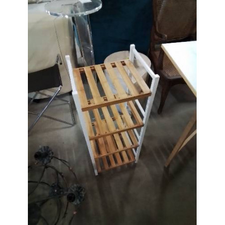 ÉTAGÈRE BOIS AJOURE CLAIR ET MÉTAL BLANC 4 TABLETTES