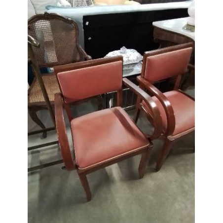 • BRIDGE BOIS ASSISE ET DOSSIER SKAÏ BORDEAUX ANNÉES 50