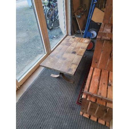 TABLE BASSE RECTANGULAIRE PIÈTEMENT ACIER DESSUS PLATEAU CARRELÉ ANNÉES 50